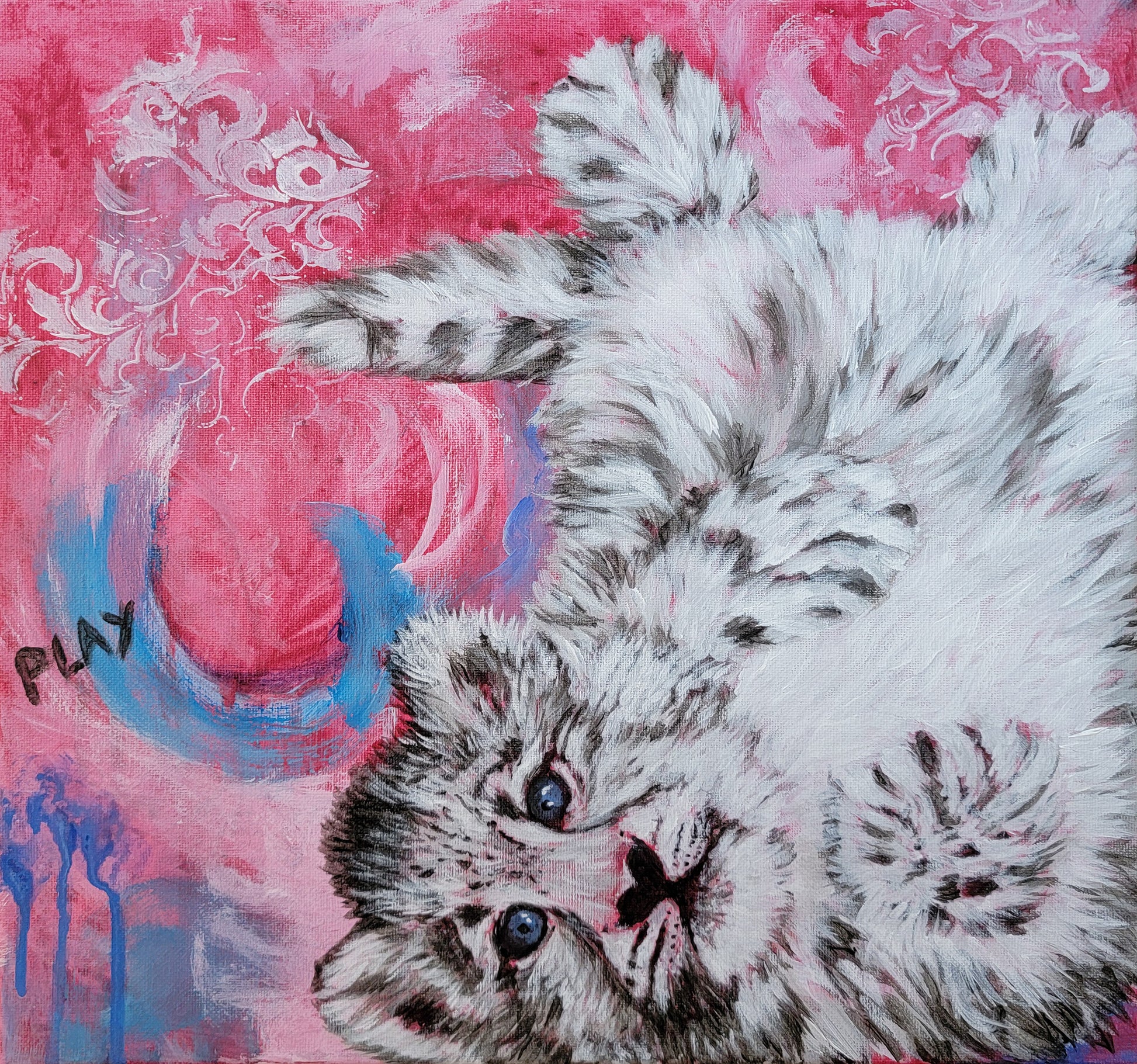 Acrylic on canvas. 14 x 14 Play like there's no tomorrow.